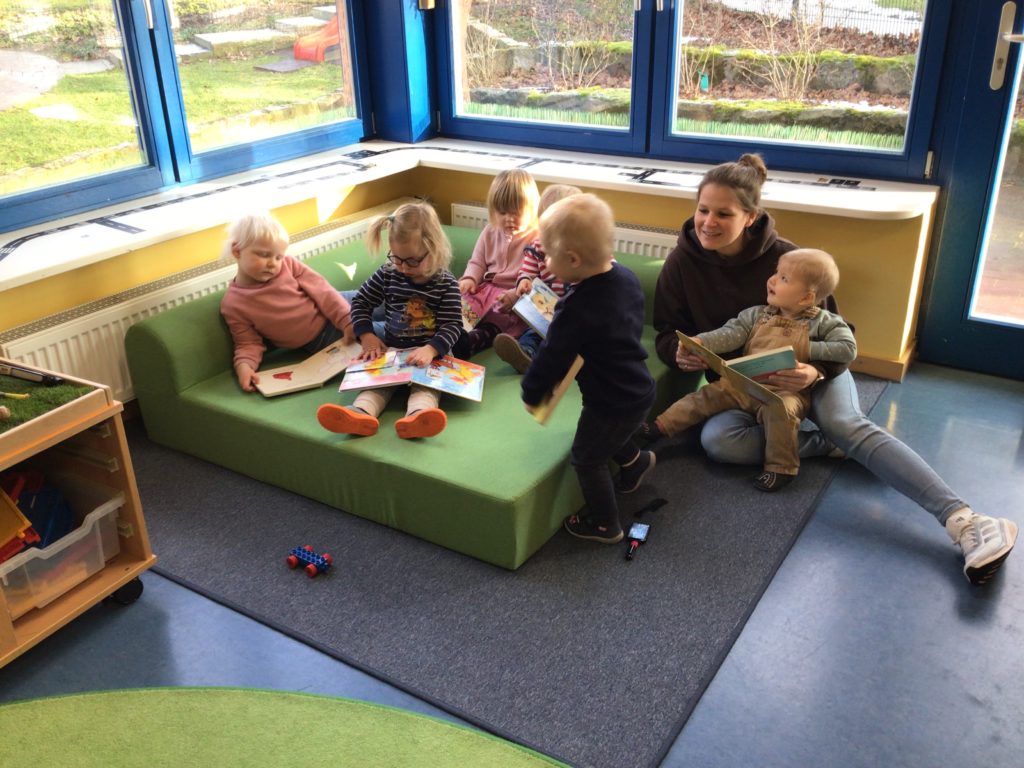 Der Förderverein hat der Krippengruppe eine neue, tolle Leseecke gespendet.